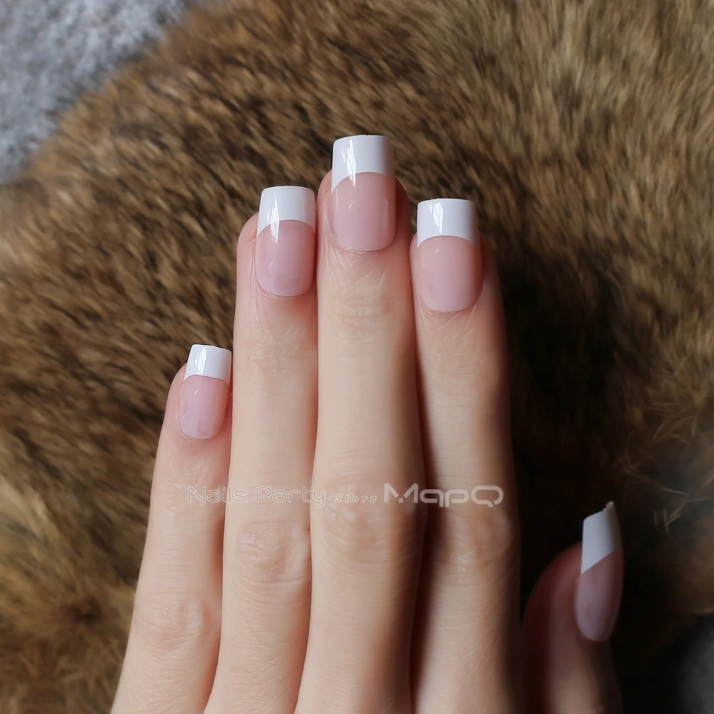 Faux ongles courts et carrés, rose clair, UV, French manucure, 24 pièces, ensemble complet, couleur chair, brillant, pour mariage | AliExpress