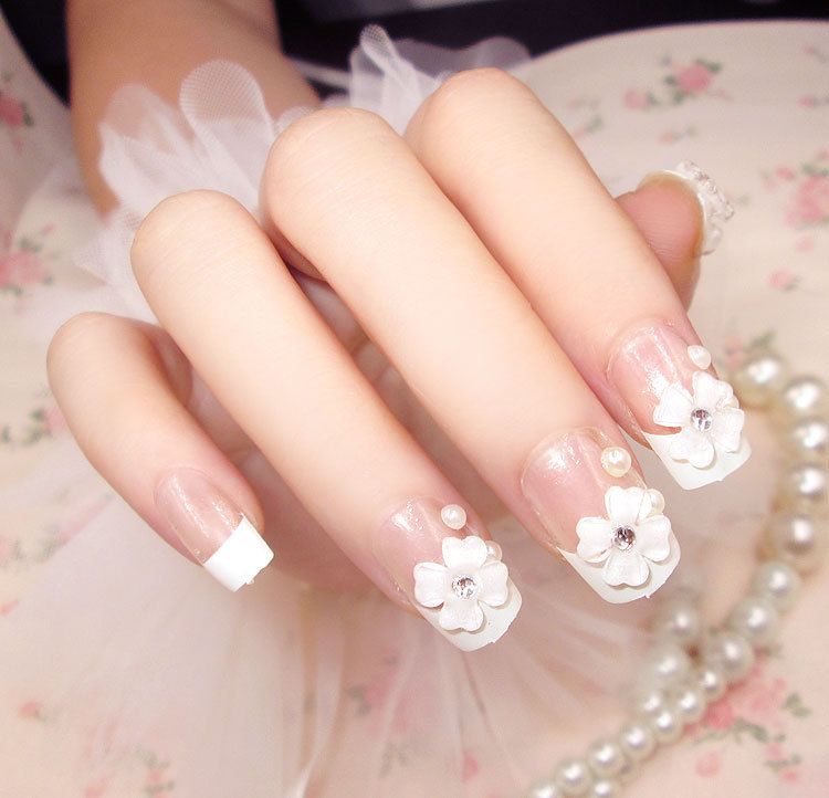 Français Designs Nail Mariée ♥ 3D Céramique Fleur Rose Avec Strass Pour Ongles De Mariage ♥ Art Créatif Et Unique Nail Mariage #791173 - Weddbook