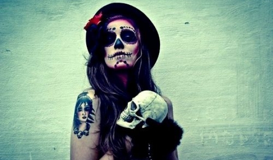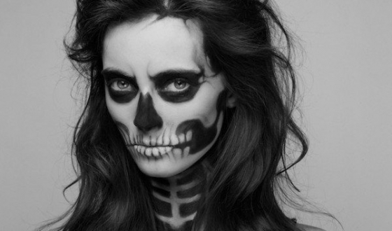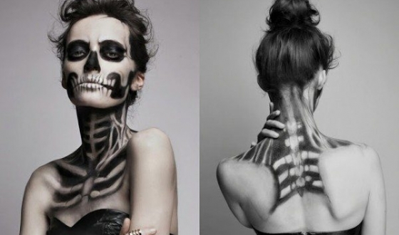 A csontváz képe jobban megfelel vékony fiúknak és lányoknak. Kocka, csonttal az öltöny nevetséges. Öltöny készítéséhez elegendő csontokat rajzolni egy ruhára vagy ingre, kezeslábasra. Színes vagy festék kontrasztos ruhadarabjára markerre lesz szüksége. Nagyobb jelentőségű ebben a képben a smink, amelyen dolgozni kell.