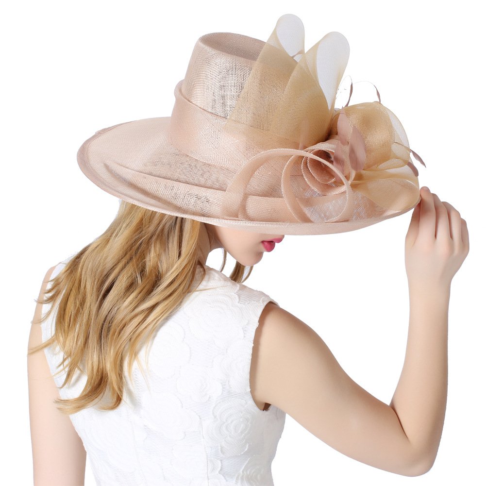 FS Schwarz Kirche Hut Blume Feder Große Krempe Fedora Kentucky Derby Hüte Für Frauen Hochzeit Lila Rot Partei Breiten Organza hüte|Women's Sun Hats| - AliExpress