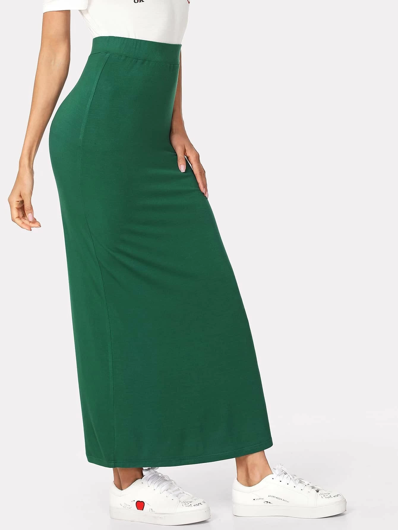 SHEIN Langer Jersey Rock mit elastischer Taille | aktuelle Trends, günstig kaufen | SHEIN Deutschland