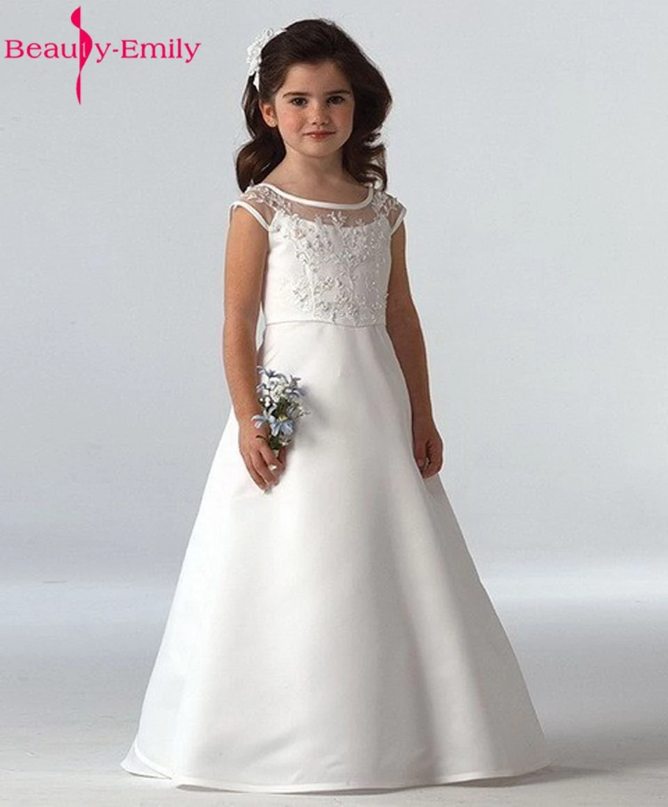Beauty Emily White Scoop A line Long First Communion Dresses Flower Girls Dresses 2018 Baby Girl Christening|communion dresses|flower girl dressesdress flower girl - AliExpress