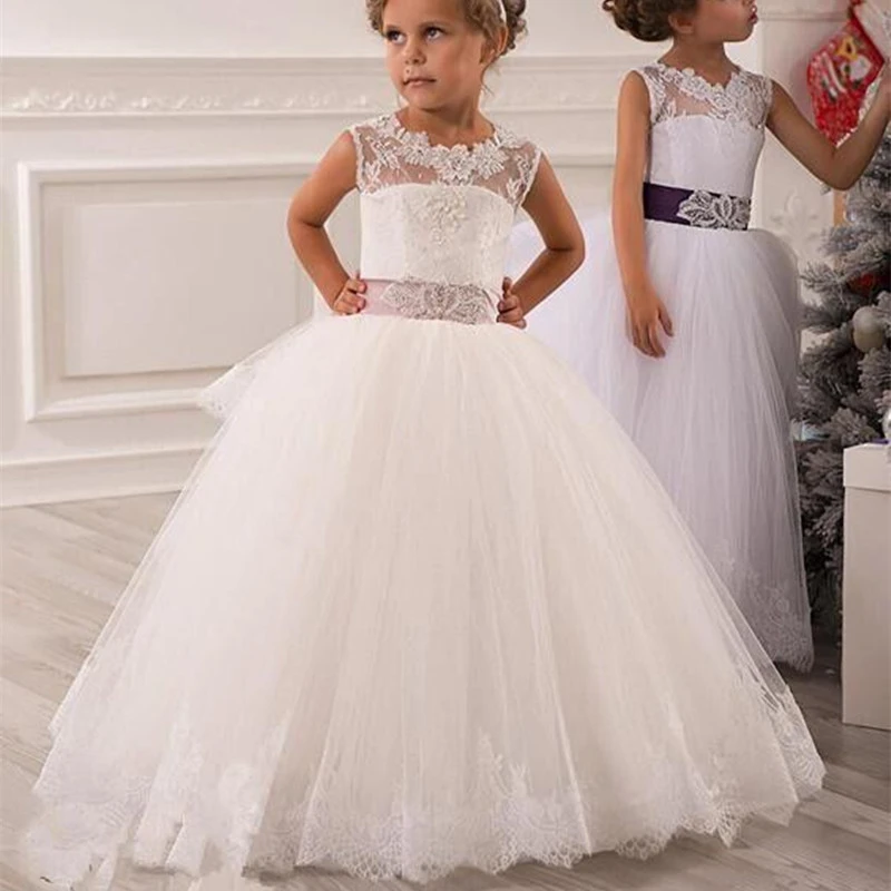 White Lace Flower Girl Dresses Vneck Sash Tulle Pageant First Communion Dresses Prom Ball Gown Princess Baby Girl Party Dresses|Flower Girl Dresses| - AliExpress