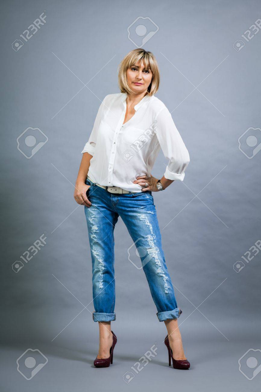 Trendy Middle-aged Woman With A Charming Smile And Shoulder Length.. Stock Photo, Picture And Royalty Free Image. Image 29500847.