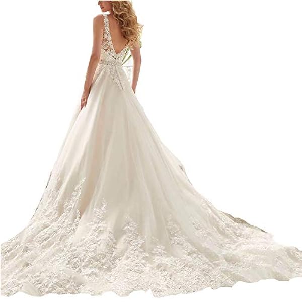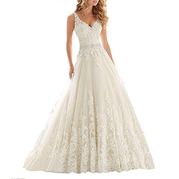 BWCX Brudklänningar bröllopsklänning spets applikationer brud bröllopsklänningar party brudklänning, damer v-ringad lång brud mode