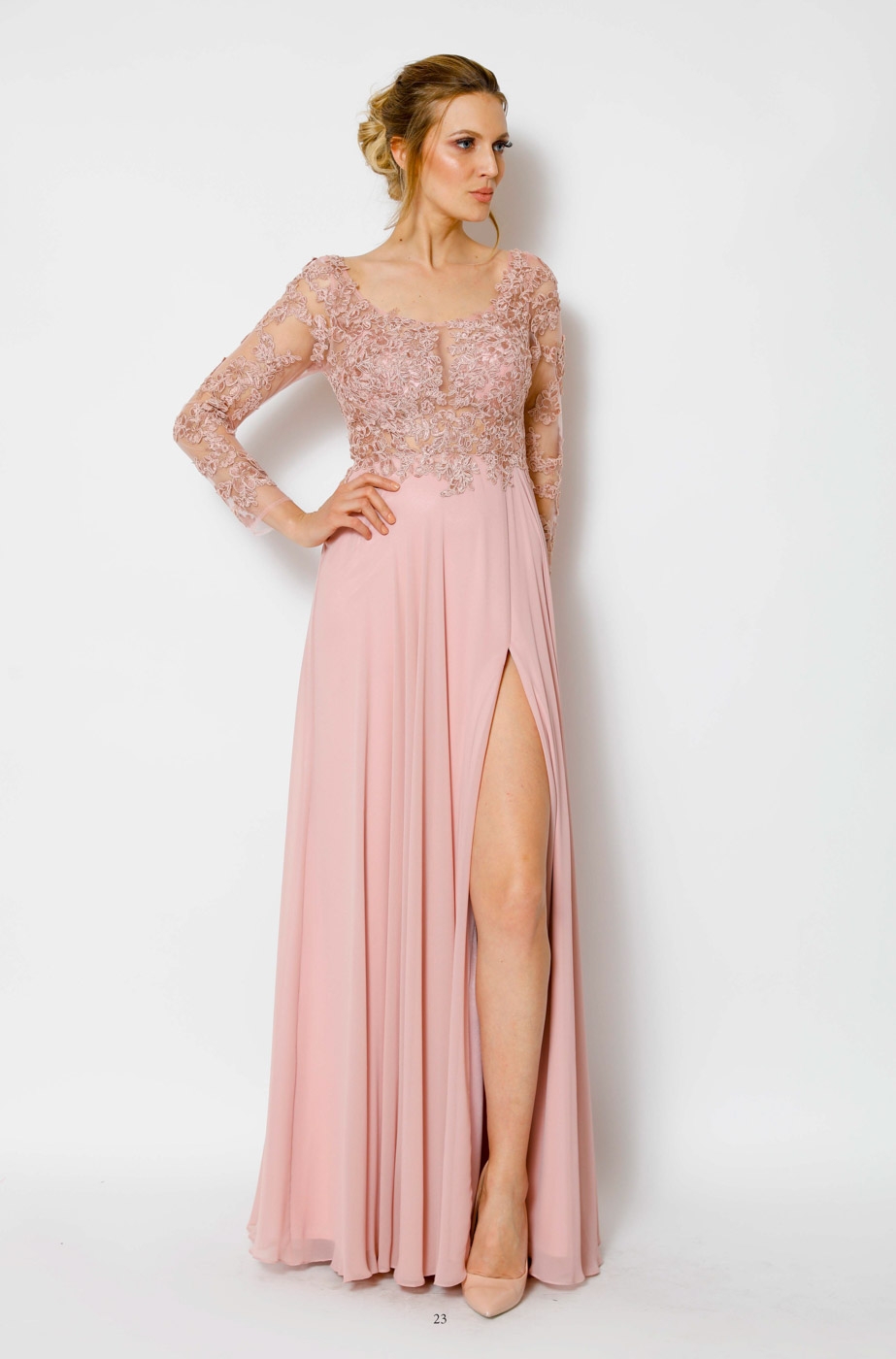 Abito da Cerimonia Rosa antico Pronta Consegna con maniche a tre quarti e pizzo rebrode