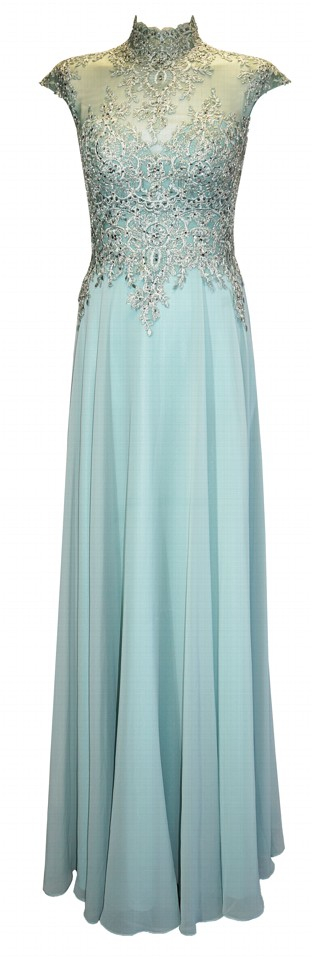 Abito lungo cerimonia donna elegante con ricami pizzi strass, perfetto per le occasioni più importanti. Lungo caratterizzato dal busto superiore realizzato in preziosi ricami floreali, questi formano sulla schiena un'elegante trasparenza.