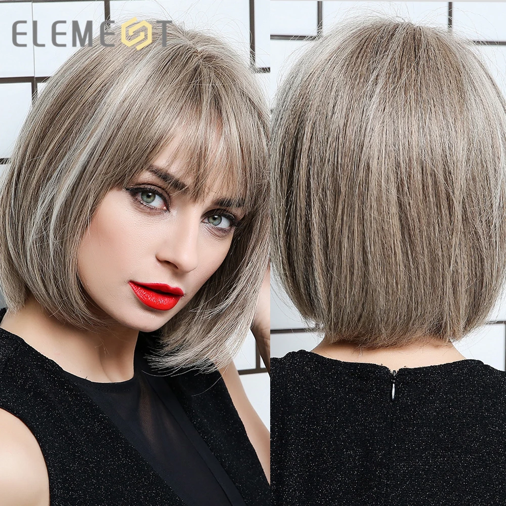 Element Kurze Gerade Synthetische Braun Mix Grau Haar Nette Bob Perücken mit Pony für Weiß/Schwarz Frauen Cosplay Partei oder Den Täglichen Verschleiß|Synthetic None-Lace Wigs| - AliExpress