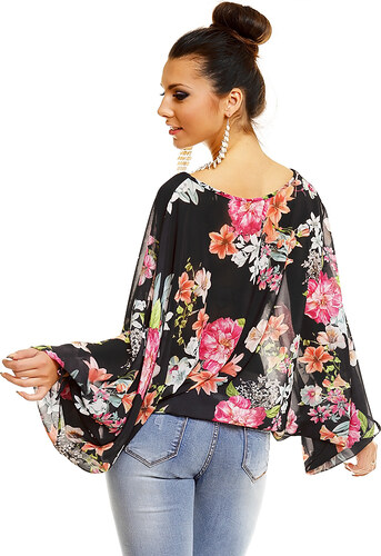 Italy Tunika Bluse Blumenprint zweifarbig, lässig und bequem