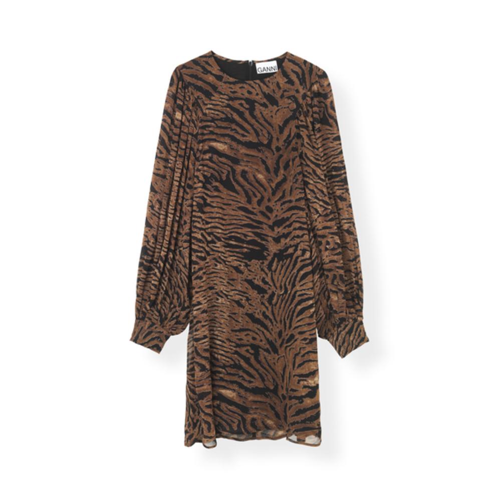 Ganni Gedrukte Georgette Jurken in het Bruin - Lyst