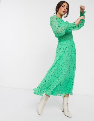 Ghost - Margot Georgette - Midi-jurk met gesmokte borst | Saluscampusdemadrid