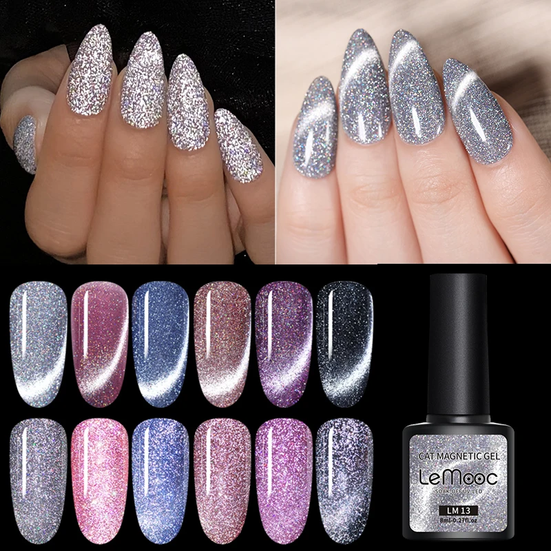LEMOOC Reflective Diamonds Cats Eye Gel Nail Polish Semi Permanent UV LED 9D Wide Cat Eyes Nails Art Varnish Lacquers 8ml|Nail Gel| - AliExpress