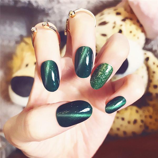 Nero UV Gel Ballerina Unghie Finte Medio Galaxy Verde di Scintillio Occhi di Gatto Progettato Acrilico Punte di Arte Del Chiodo con Gluetabs 24|False Nails| - AliExpress