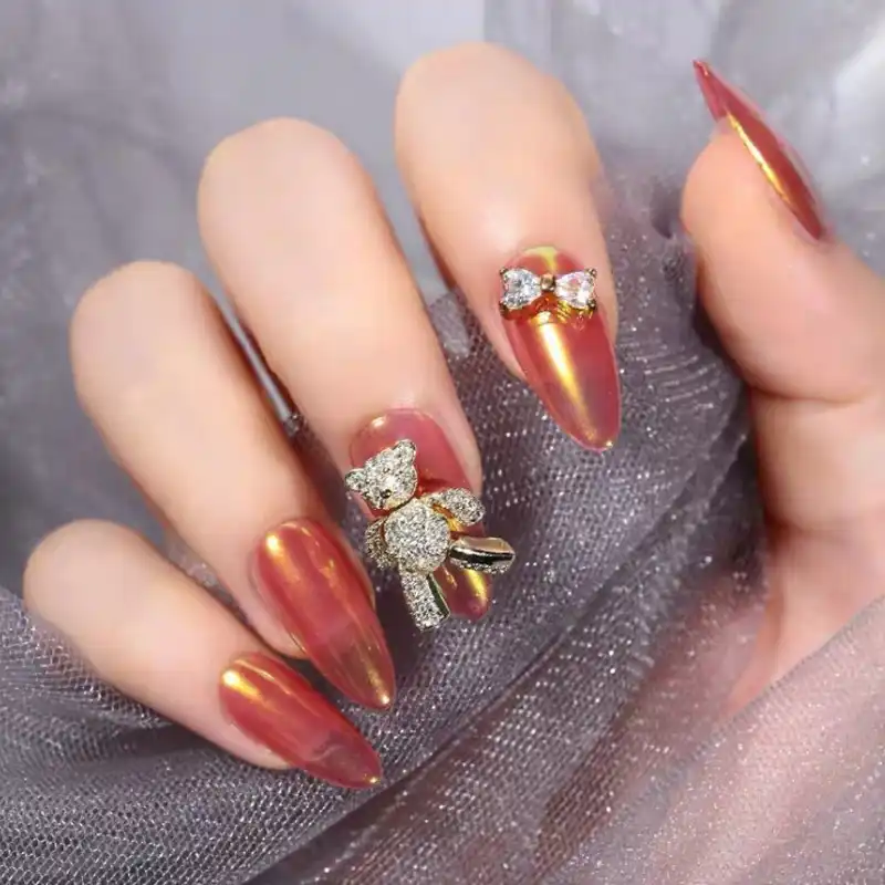 Ours mignon en alliage 3D Zircon, décorations Nail Art, or argent, petit ours mobile cristal, bijoux de luxe, accessoires de manucure Design | AliExpress