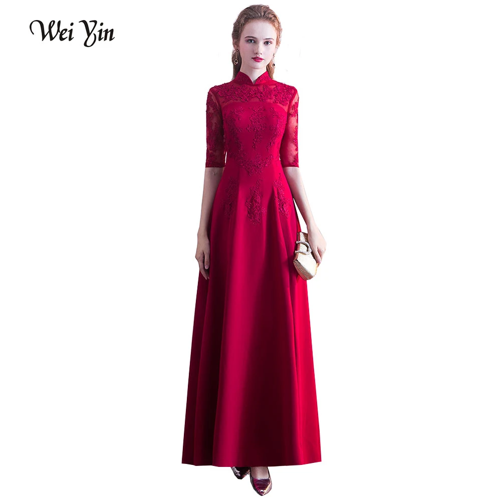 Robe De soirée en dentelle rouge, à forme droite, avec manches longues, robes De fête, vin, robes d'occasion, 2020 | AliExpress