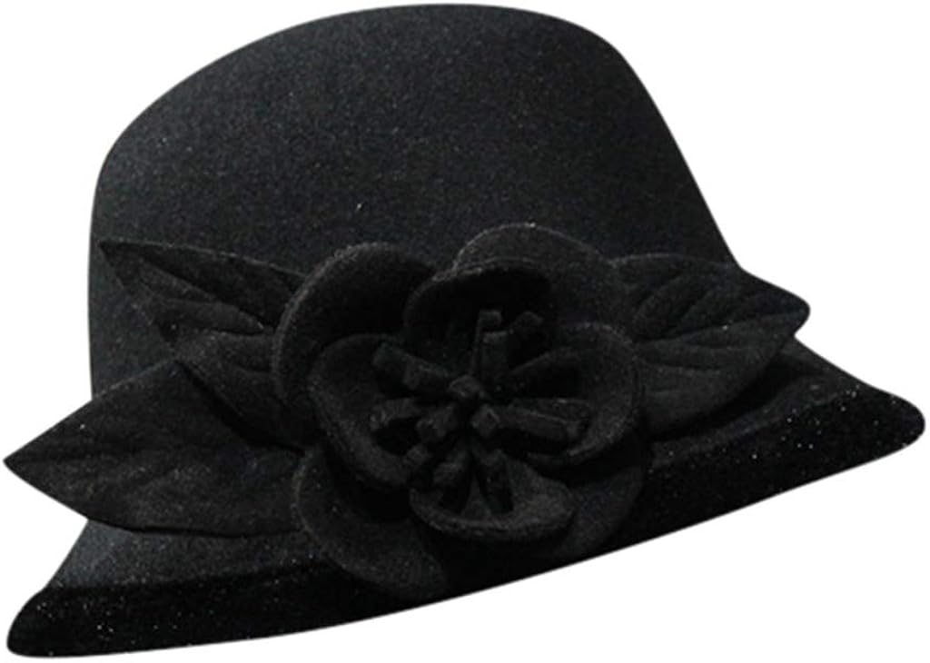 Storerine Melone Hut, Damen Baumwolle Breiter Krempe Filzhut Panama Hut Mit Schwarzer Rand Damen Vintage Abend Party Hut Elegant Vintage WintermüTze Blumen Im Herbst Und Winter Warm Halten