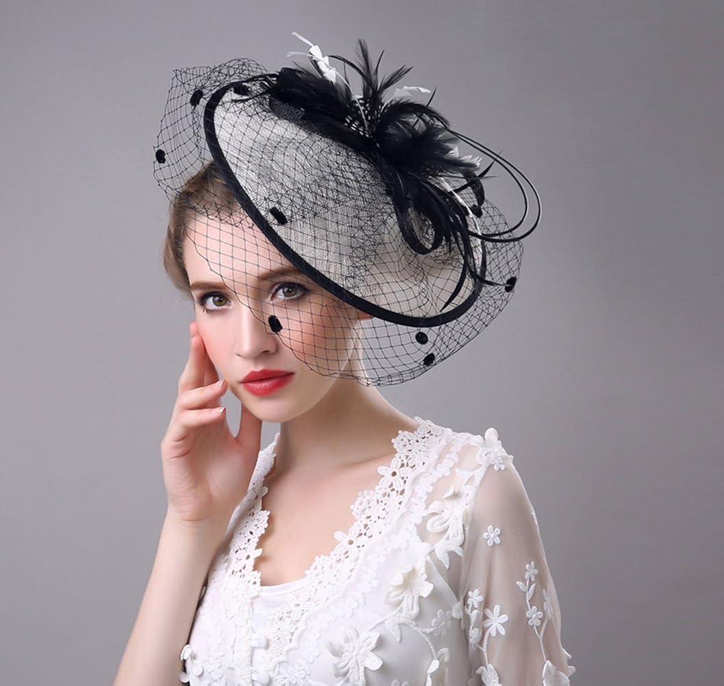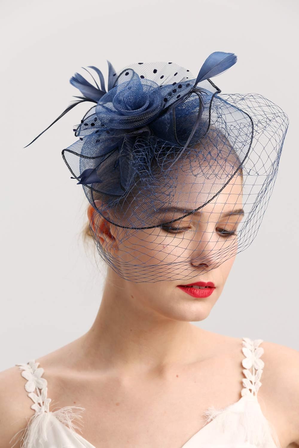 Fascinator-Hut 50er-Jahre-Hut Cocktail-/Tee-Party-Kopfbedeckung mit Schleier 20er- für Mädchen und Damen Pillbox-Hut